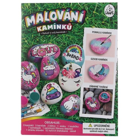 Kavics festés - a csomag része ecset, matricák, 8 kavics, 5 szín, ajánlott 3 éves kortól