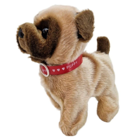 Egy plüss kutya minden állatbarátnak tetszeni fog. A kapcsoló BE állásba kapcsolása után a kutya magától sétál és ugat.