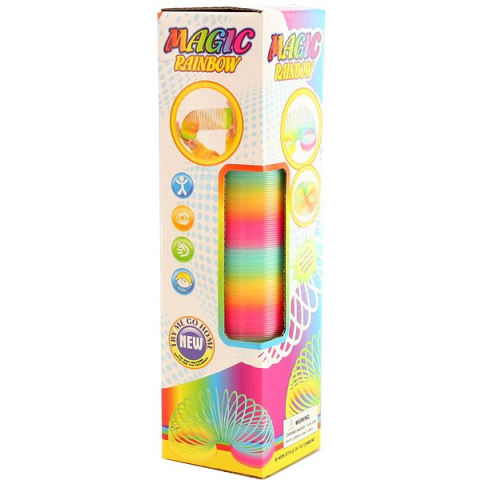Lépcsőjáró rugó - műanyag, sárga, rózsaszín és zöld színű, hossza 30 cm, átmérője 7,5 cm A nagy műanyag rugó, amelynek gyönyörű színei vannak, rengeteg mókát hoz a gyermekeknek. A szivárványos színek még izgalmasabbá teszik, mint a hagyományos színű rugók. Még ha nem is tűnik úgy, de a ru