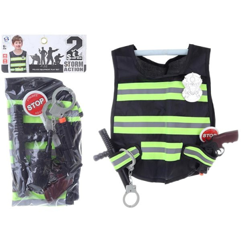 Jelmez kiegészítő - fekete és fluoreszkáló kivitel, anyaga műanyag, fegyver, bilincs, gumibot és mellény a csomag része
