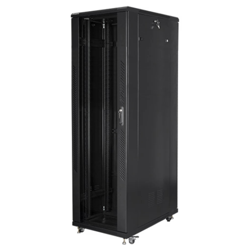 Szabadon álló rugalmas beépíthetőséggel rendelkező szerver szekrény.
