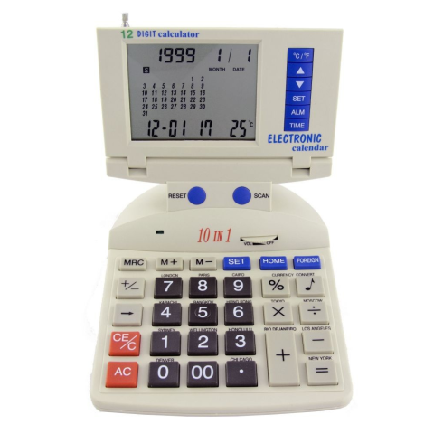 - multifunkciós 12 számjegyes számológép - funkciók: naptár, ébresztőóra, világóra, elektronikus hőmérő(°C vagy °F) - FM-rádió automata kereséssel és beépített rádióantennával,hangszóróval - 3.5 jack-audio kimenet - működtetés történhet elemekről vagy kü
