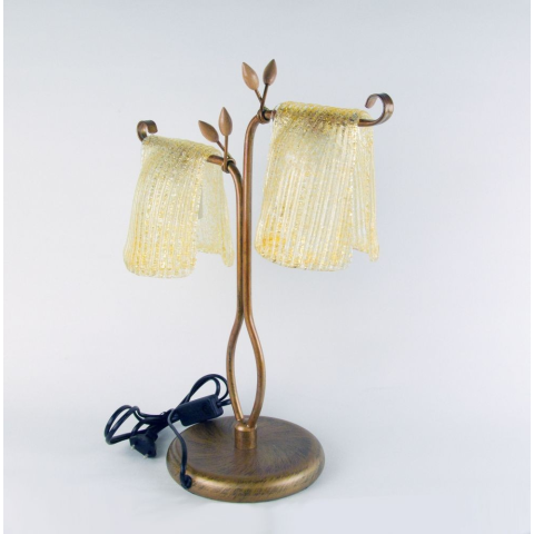 - 220-240V 50/60Hz - 2x E27 max 60W - Csipkézett üveg - Réz ötvözet állvány - Talp átmérője: 18 cm - Magassága: 45 cm - Szélessége: 37 cm