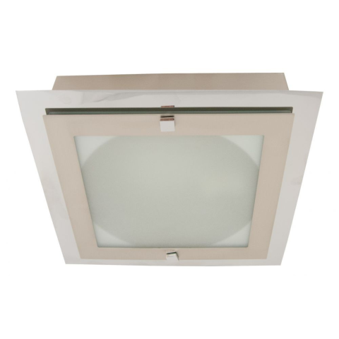 - modern dekoratív mennyezeti lámpa - foglalat: 1xE27 max 60W izzóval! - lámpatest: matt fehér üveg - a külső keret fényes króm - az üveglapot rögzítő keret matt króm - hossz: 300mm - méretek: 300mmx300mm x 80mm