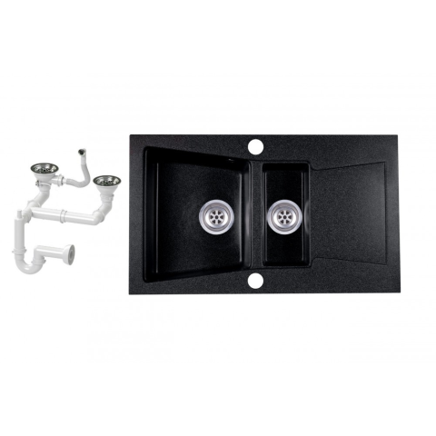 1 kép Laneo Locarno L87-515BI Gránit Mosogató + Szifon Készlet (Fekete)