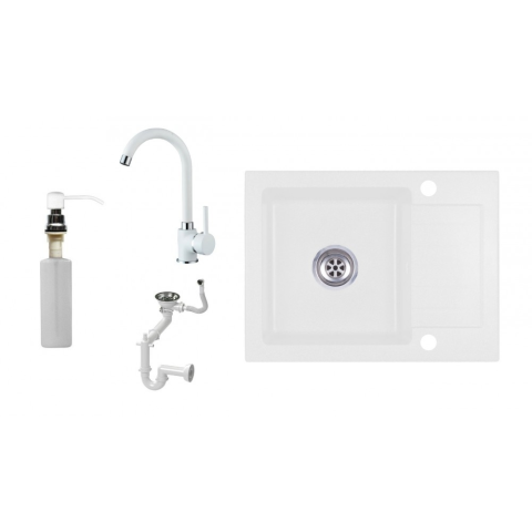 Laneo V575-44BI Gránit Mosogató + Csap + Szifon + Pumpa (Fehér) fürdőkellék 1 kép