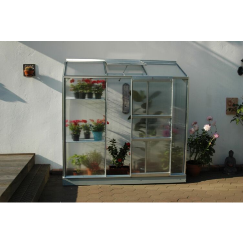 Gyártó - VITAVIA GARDEN - Nagy-BritanniaAz IDA sorozat falára készült üvegházak a PREMIUM kategóriába tartoznak - az üvegházat egy nagy-britanniai márkás gyártó készíti. Az üvegház eloxált alumínium profilokból készül. Az üvegezés 4 mm vastag, hőszigetelő cellás polikarbonát lemezekből készül. Az üvegezés acélkapcsokkal van rögzítve az alumínium profilokhoz.Polikarbonát - prémium brit duplafalú 4 mm-es polikarbonát erős UV szűrővel (így nem sá