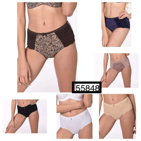 Női széles oldalú pamut-csipke alsó (magas állású)