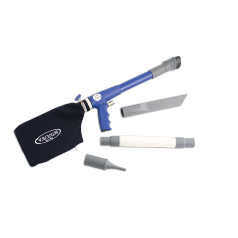 Levegős működtetésű, vákuumos elvű mini porszívó készlet tartozékokkal.