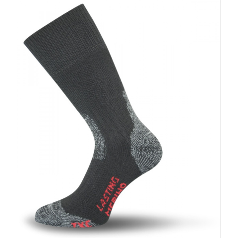Meleg téli túrazokni A Lasting legmelegebb túrazoknija. Anyagösszetétel: 30% Merino Wool, 30% BB acryl, 20% M1X, 15% Polyamide, 5% Lycra. Kifejezetten erős fagyra tervezett zokni magas gyapjútartalommal. Vastag Hardtech védőpárnázottsággal és rugalmas rögzítő bandázsokkal ellátott termék, ami rendelkezik a gyapjú minden pozitív jellegzetességével, úgymint vezetőképesség, gyors nedvszívóképesség és kipárolgás. Mindez azonban mindenfajta bőrirritáció és viszk