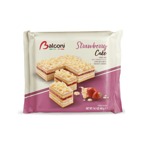 Balconi torta 400g Strawberry - epres Termékleírás Friss epres ízvilág, krémes textúra és puha piskóta – mindez egyben a Balconi Strawberry tortában. A 400 g-os változat egy egyensúlyban harmonizáló összhatást kínál, amely ideálissá teszi uzsonnára,