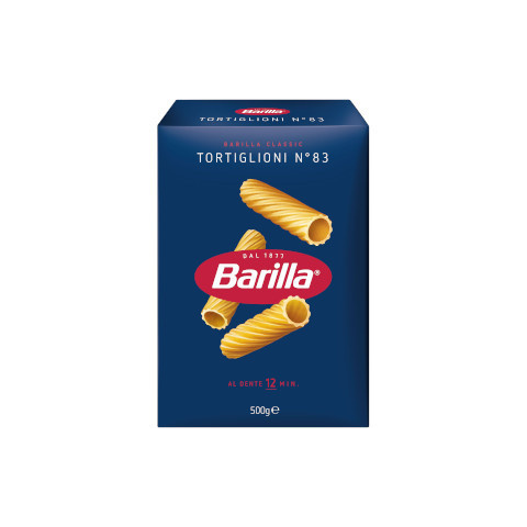 Barilla 500g Tortiglioni n.83 – Cső Barilla 500 g-os csomagolásban kínálja a klasszikus Tortiglioni formájú Cső tésztát. Az n.83 kód egyedülálló textúrát és alakot biztosít, amely tökéletesen megfogja a szószokat, így minden falat gazdag ízélményt ny