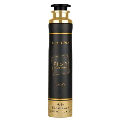 Lattafa Khamrah Légfrissítő spray, 300 ml 2057305Egy meleg, fűszeres–édes illatvilágú légfrissítő spray, amely a híres Khamrah parfüm inspirációján alapul. Ez az elegáns, intenzív légfrissítő tökéletes választás otthonba, autóba vagy irodába, ha szeretnél hosszan tartó, parfümszerű illatélményt varázsolni a környezetedbe. Az orientális jegyek, fűszerek, gyümölcsök és vanília harmonikus elegye luxus hangulatot teremt bármely térben.Főbb jellemzők:–
