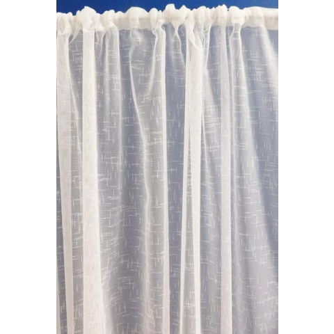 100%polieszter, 190cm magas, 300cm széles, tetején ráncolóval, alján ólommal,modern nyírt mintázatú hófehér voila kész függöny, vasalást nem igényel