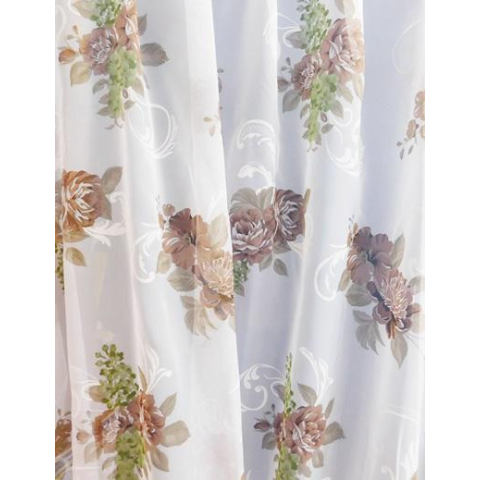 Látvány Textil Kft Fehér voila kész függöny Olívia barna virág N. 90x90cm bújtatós lakástextília termékleírás
