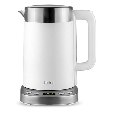 Vízforraló - hőmérséklet szabályozás, rozsdamentes, űrtartalma 1,7 l, fehér kivitel, 2200 W energiafogyasztás, LCD kijelző, forgótalp, háttérvilágítású kapcsoló, rejtett spirál és kábeltartó rekesz, túlmelegedés és víz nélküli működés elleni védelem, hőmérséklet megtartása, kivehető szűrő Mutatós vízforraló a vízmelegítés állítható hőmérsékletévelA Lauben Electric Kettle EK17WS elektromos vízforraló mutatós fehér rozsdamentes acél megjel