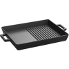 Lava Grill tepsi, méretei 26 x 32 cm, anyaga öntvény. A belső felület egyik része bordázott, a másik pedig sima. Az öntvény nehezen melegedik át, de egyszer átmelegedve hosszú ideig tartja a hőt. Az öntvény edények valamennyi főzési technika alkalmazásához megfelelnek, legyen az sütés, lassú főzés vagy sütőben történő elkészítés. Tulajdonságai: Az edény oldalának vastagsága 4 mm. Az edény belső felületén egy fekete zománcréteg van, amely zsiradék hasz