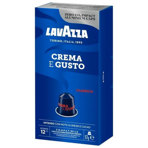 Kávékapszula - caffè latte, espresso és ristretto, kávékeverék, dark (intenzitás 12), csokoládés aroma, fűszerezett és fás tónusú, származási helye Dél-Amerika, Afrika és Ázsia, újrahasznosítható, alumínium anyagú kapszula, 10 kapszulát tartalmaz Sablon az ételek színének módosításáhozLavazza NCC Crema E Gusto kávékapszula10 dbA Lavazza NCC Crema E Gusto kávékapszulákat kifejezetten Nespresso kávégépekhez tervezték. 30% Arabicából és 70% Robus