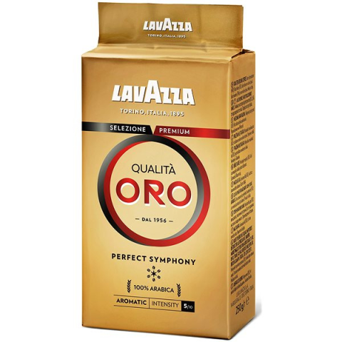 Kávé - őrölt, 100% Arabica, csomag tömege 250 g A Lavazza Qualita Oro egy igazán kivételes kávé. A Közép-Amerikából származó, tökéletes pörkölésű 100% Arabica kávészemek gyengéd, kellemes ízvilágot nyújtanak a kávékedvelők számára.