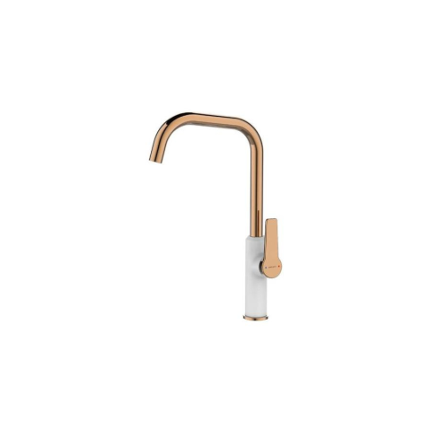 1 kép    LAVEO ALANIS Konyhai csaptelep L alakú kiömlővel, Szín: fehér/rózsaarany