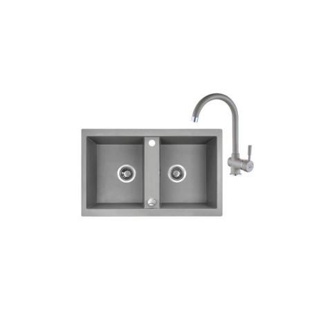 1 kép LAVEO BARBADOS SET szürke Gránit mosogató: kétmedencés, Szín: szürke álló csapteleppel, SRBA_520T