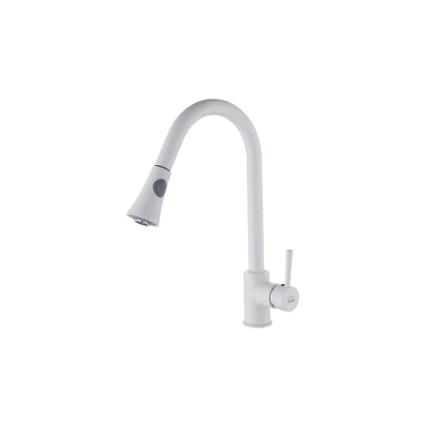 1 kép    LAVEO DARU Konyhai zuhanyváltós kihúzható csaptelep, Szín: fehér gránit