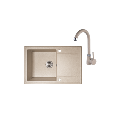 1 kép    LAVEO HUNTER SZETT Gránit mosogató: egymedence csepptálcás, Szín: Bézs álló csapteleppel