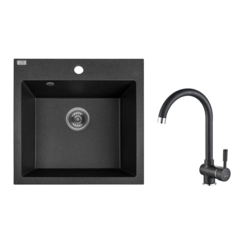 LAVEO SZETT ALENA +LETTE Gránit tálca + Álló csaptelep - Fekete SRAA 710T