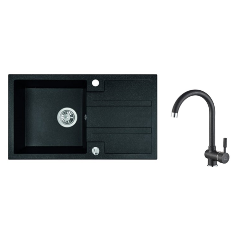 1 kép LAVEO SZETT BARBADOS+ LETTE Gránit tálca + Álló csaptelep - Fekete