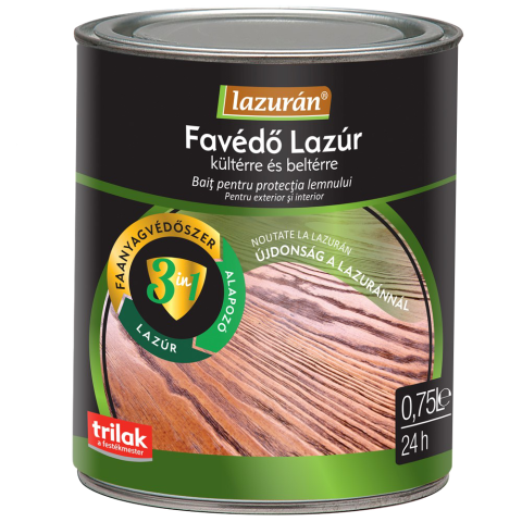 1 kép    Lazurán LAZURÁN 3IN1 FAVÉDŐ LAZÚR 0,75L MOGYORÓ