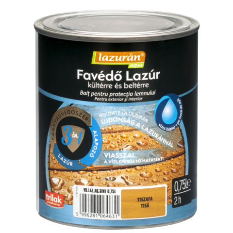1 kép    Lazurán LAZURÁN AQUA 3IN1 FAVÉDŐ LAZÚR PALISZANDER 0,75L