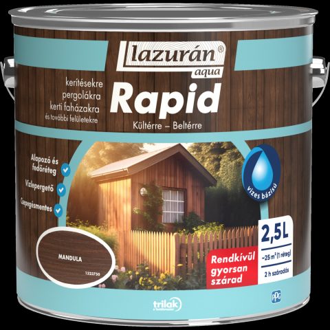 1 kép Lazurán LAZURÁN AQUA RAPID VÉKONYLAZÚR, 2,5 L, MANDULA