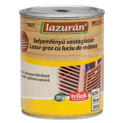 Oldószeres, selyemfényű lazúrfesték kül- és beltéri fafelületek (ajtó, lambéria, kerti bútor stb.) kezeléséhez. Trinát szintetikus hígítóval hígítható. Kiadósság: 13 m2/l/réteg. Száradási ideje: 24 h. Felvitele 1-2 rétegben javasolt.