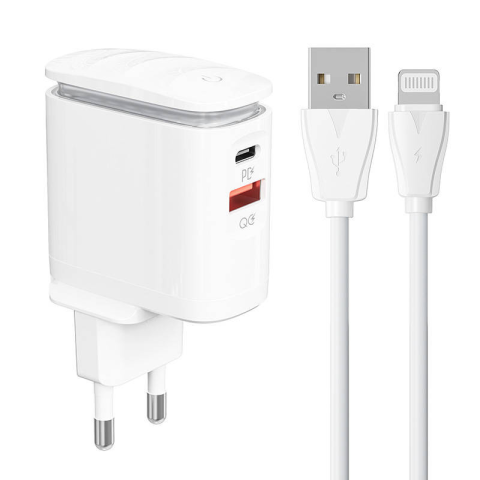 1 kép LDNIO Wall charger LDNIO A2423C USB, USB-C + Lightning cable
