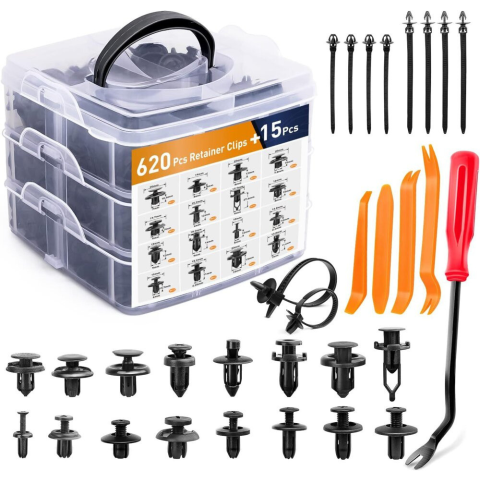 Autós csipeszek rendezőben, 16 méret, PVC, 620 db Autós klipszkészlet rendezőben 16 méret PVC 620 darabos Ez az autós klipszkészlet 620 darabot tartalmaz népszerű méretekben, így felbecsülhetetlen értékű eszköz bármilyen műhelyben vagy garázsban. A 3 s
