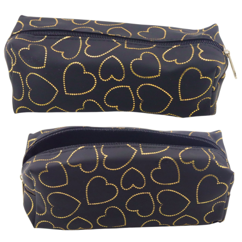 Egyrekeszes Iskolai Irodai Tolltartó Arany Szívek Fekete 20x8 cm FEKETE TOLLTARTÓ ARANY SZÍVEKKEL Ez a stílusos és funkcionális tolltartó elegáns fekete színben, finom arany szívmintával díszítve, tökéletes választás diákoknak, egyetemistáknak és minde