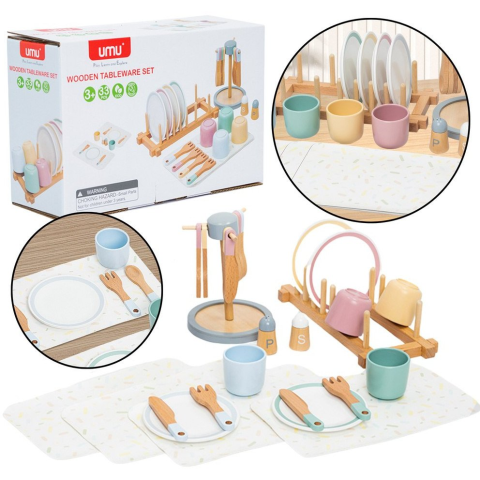lean Fából Készült Gyermek Étkészlet Asztali Állvány 33El (22036)