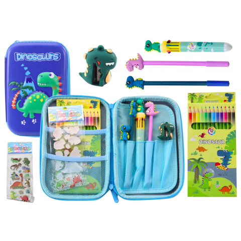 1 kép lean Iskolai tolltartó dinoszaurusz kék kiegészítőkkel