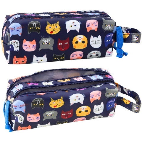 1 kép lean Iskolai Tolltartó Színes Macskák Két Zsebbel Tengerészkék 22cm 21812 (21812)