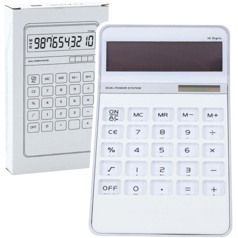 1 kép lean Klasszikus 10D asztali számológép, 10 számjegyű kijelző, napelemes, fehér – 21869 (21869) Számológép