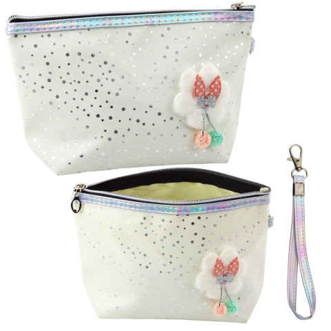 Tolltartó Kozmetikai táska, masni, fényes pöttyökkel, fehér, 23x16cm FEHÉR TOLLTARTÓ/KOZMETIKUM TOK DEKORATÍV POMPOMMAL ÉS MASNIVAL Ez a stílusos és funkcionális fehér tolltartó/kozmetikai táska csillámos felülettel praktikus kiegészítő mind az iskoláb