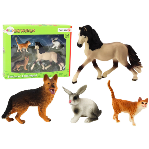1 kép    Lean Toys Állatfigurák készlete Ló kutya nyúl macska 4 darab