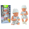 1 kép Lean Toys Baba baba kék-fehér ruhában, sapkában, cumiban, előkeben, paplanban