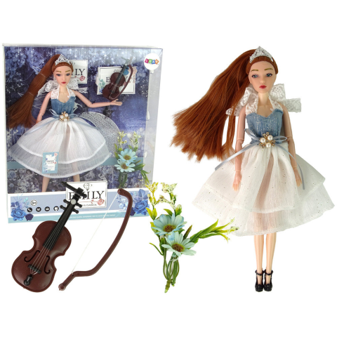Baby Doll Emily hegedűvirágok Baba Emily Hegedűvirágok Bemutatjuk a bájos Emily babát, hosszú vörös hajával, elegáns, csillámokkal és gyöngyös masnival díszített ruhában. Haja lófarokba van fésülve és tiarával díszítve, kék szemei ?pedig bájossá teszi