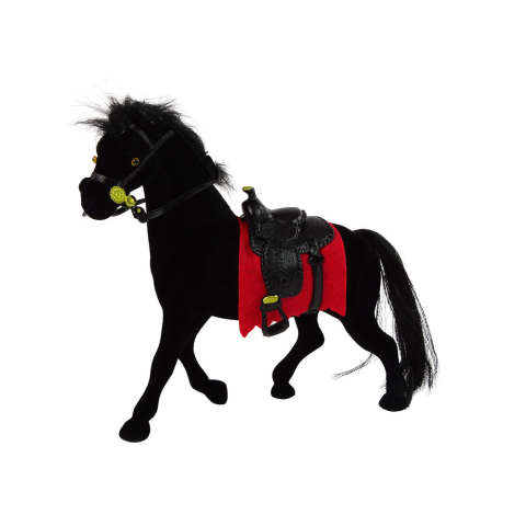1 kép    Lean Toys Bársonyfigura Fekete Ló Piros Nyereg