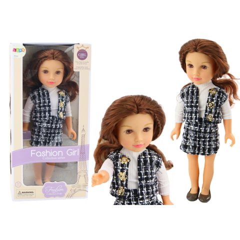 1 kép Lean Toys Doll Elegáns Kockás Ruhák Barna Haj