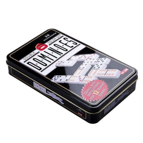 Domino dominók fémdobozban 28 db Domino Dominók Fémdobozban 28 db-os készlet Ez a készlet 2-4 játékos számára készült. 28 darabot tartalmaz. Fémdobozban csomagolva. A dominó egy téglalap alakú domino lapokkal játszott játék. A dominó játékbábuk alkotjá