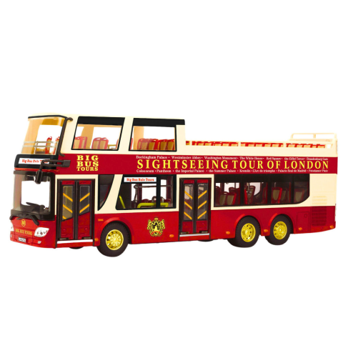 Emeletes túrabusz 1:42 fém lámpákkal, piros Emeletes Turistabusz 1:42 Fémlámpák Piros Egy emeletes tető nélküli túrabusz 1:42 méretarányban, elegáns piros és bézs színben. Ez a modell tökéletesen reprodukciója egy igazi londoni túrabusznak, így ideális