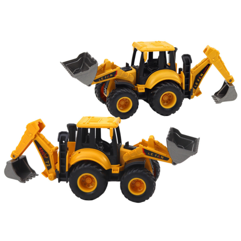 1 kép Lean Toys Építőipari jármű kotrógép két kanalas beállítás sárga
