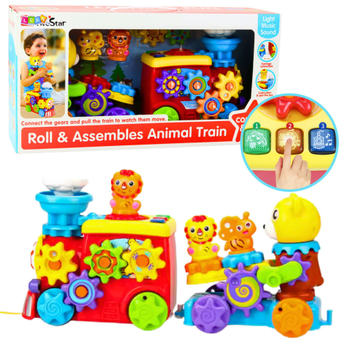 Interaktív zenélő vonat kisgyermekeknek, mackós fogaskerekek, színes ZENÉLŐ VONAT JÁRMŰ MACI FOGÁSOK INTERAKTÍV JÁTÉK GYEREKEKNEK Egy színes és interaktív zenélő vonat állatokkal ideális játék gyerekeknek, amely egyedülálló módon ötvözi a jármű funkció